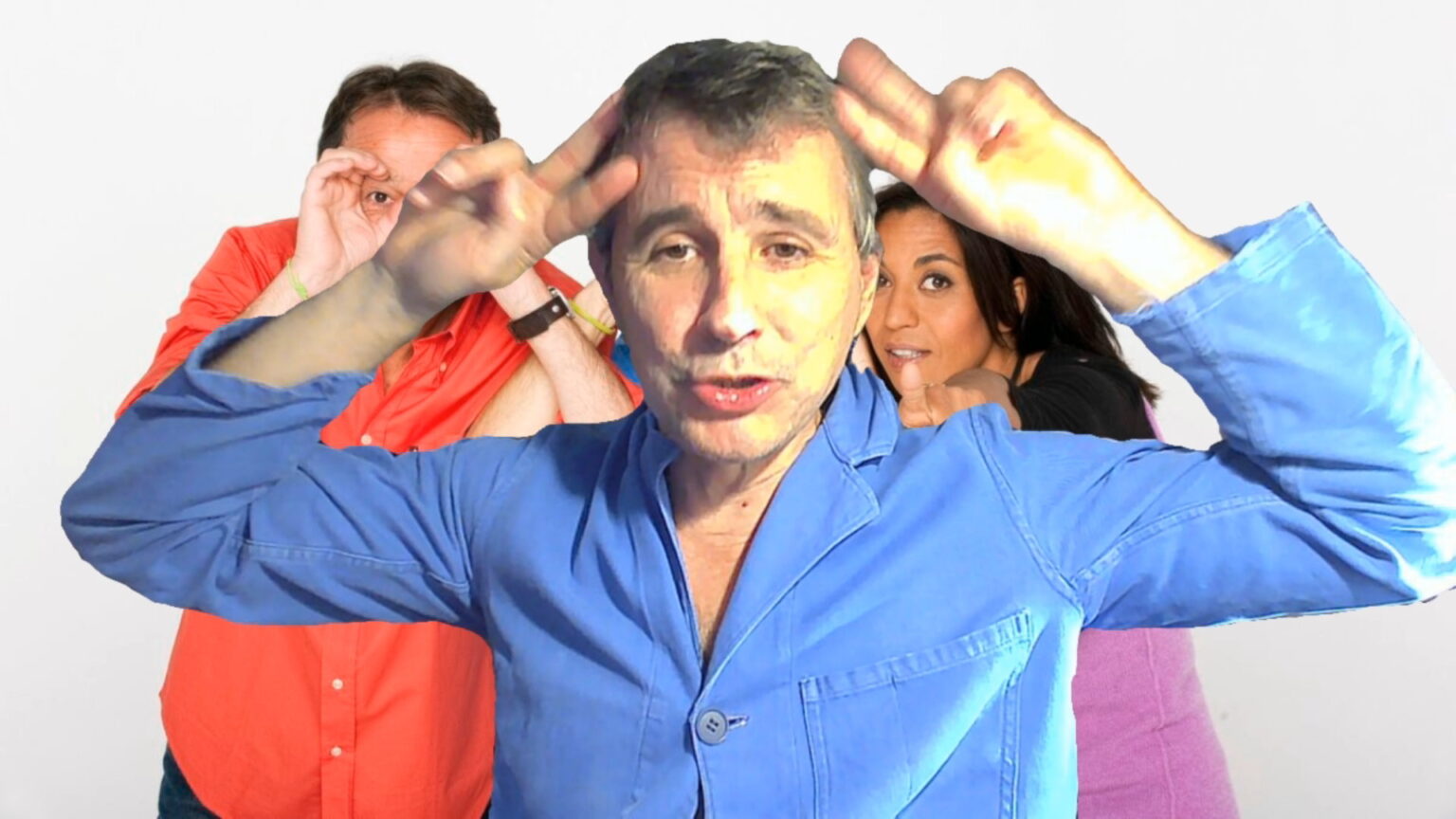 COLUCHE ET THIERRY LE LURON EN 1985, VOUS EVEILLEZ EUX AUSSI, A TRAVERS CETTE PARODIE, POUR VOUS INFORMER, QU’UNE UNION ENTRE DEUX HOMMES, DANS LE FUTUR, ETAIT EN PREPARATION DANS LE CIEL, UN MARIAGE D’AMOUR CELESTE.