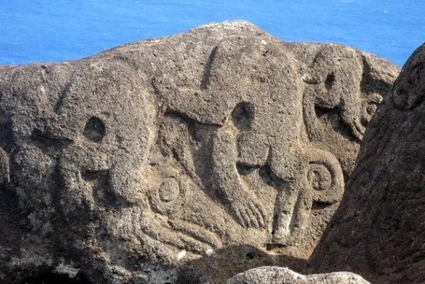 COMME PAR EXEMPLE CE CODE SUR L’ILE DE PAQUES = L’HOMME OISEAU = L’AGNEAU IMMOLE = LA NOUVELLE EGLISE = LA MORT VERS LA VIE = LA RESURRECTION.