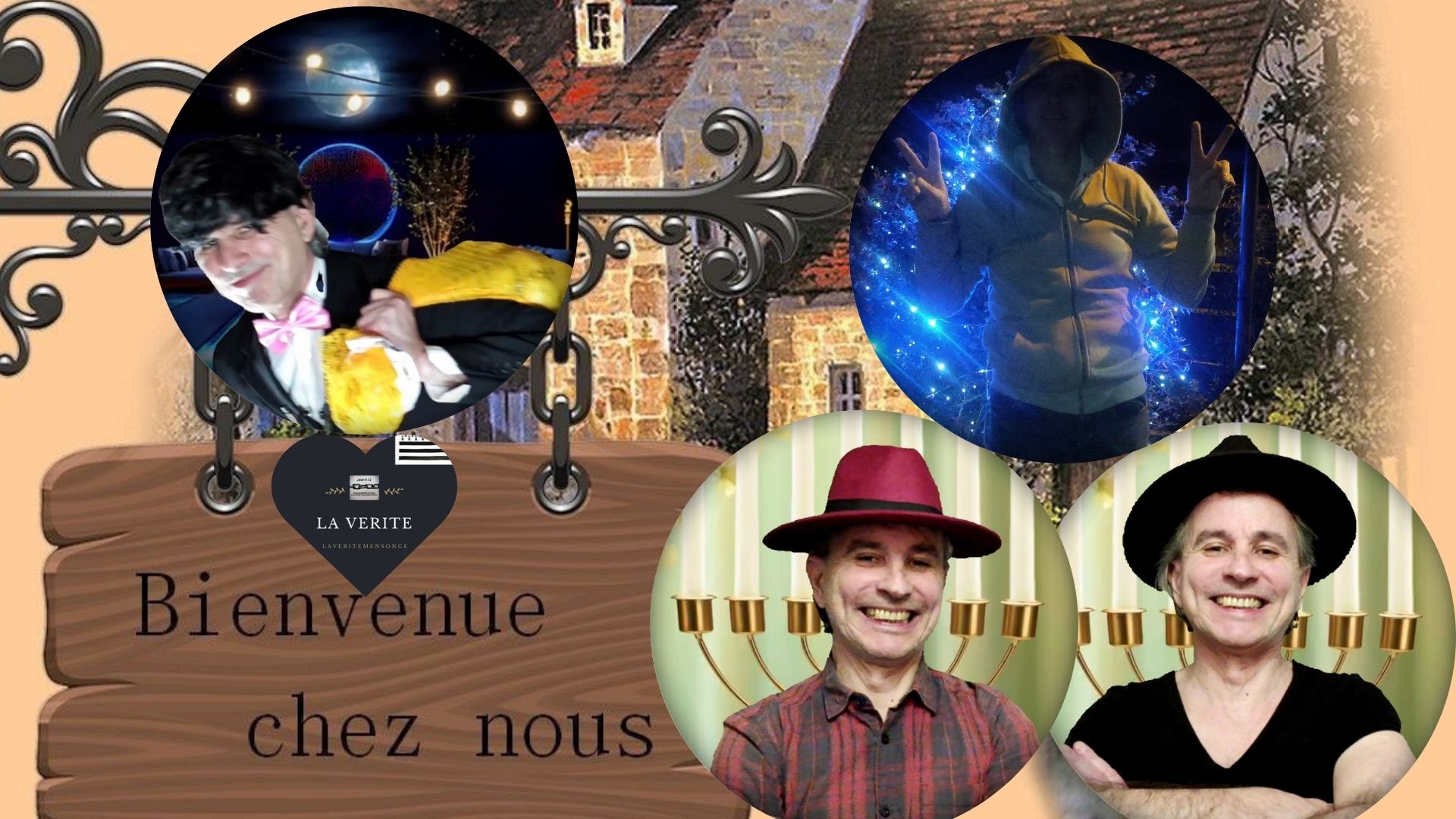 RENTREZ DANS MON ARCHE, MA STAR ACADEMY, VOTRE TABERNACLE MEDIATIQUE DE VERITE, EN EFFET LAVERITEMENSONGE A ETAIT CREE POUR VOUS DIVERTIR EN VOUS INFORMANT, POUR SORTIR DE CETTE PIECE DE THEATRE, DONT JE SUIS LE METTEUR EN SCENE, ACCOMPAGNE DE MON EQUIPE DE CLOWNS, QUI VA JOUER DES JEUX DE ROLE, SANS AUCUNE LIMITE, QUE JE REMERCIE POUR ANNONCER MON RETOUR.